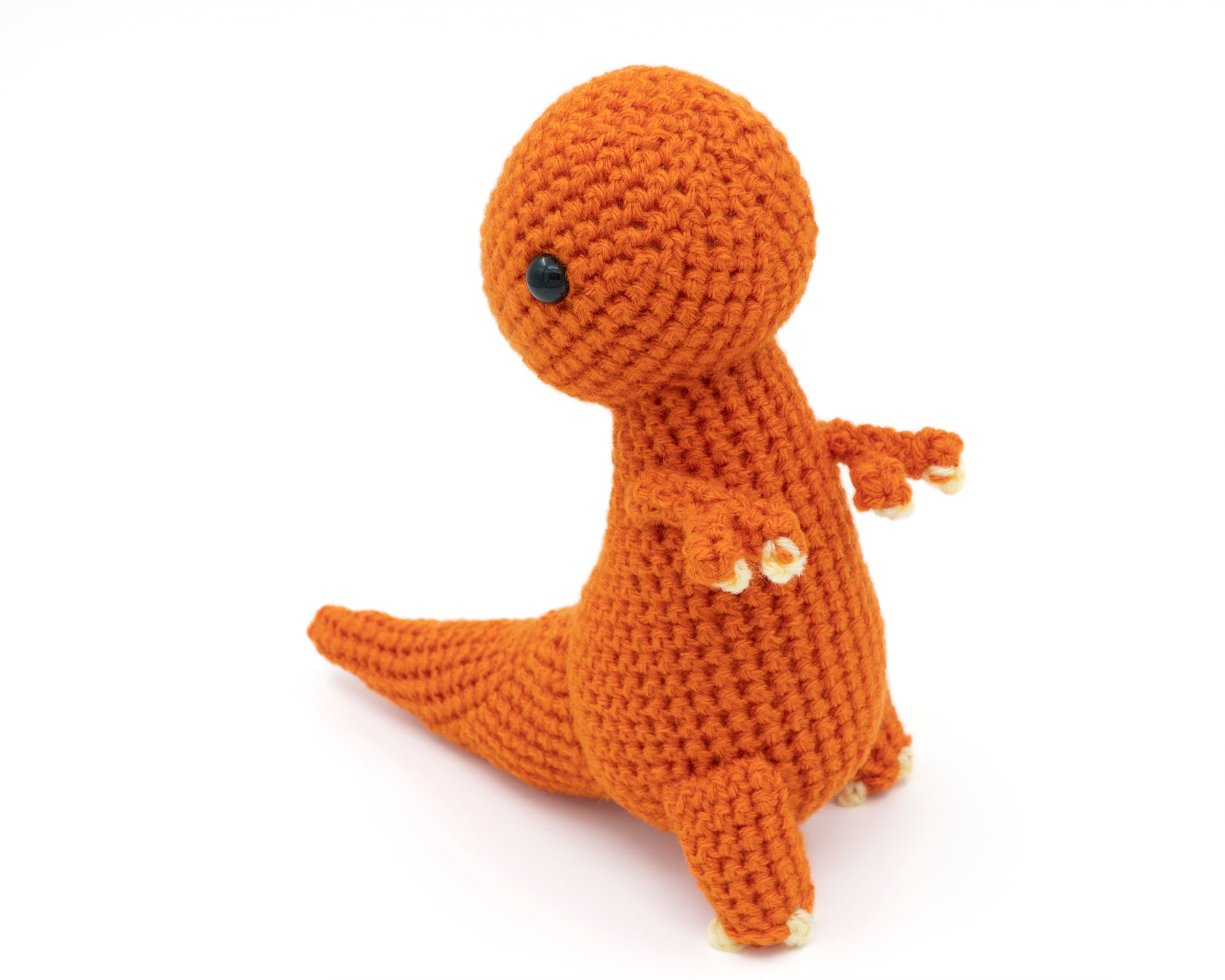If the recommended size yarn and hook are used this crochet Tyrannosaurus will be approximately 19.6 cm (7.75 inches) tall by 19 cm (7.5 inches) long.