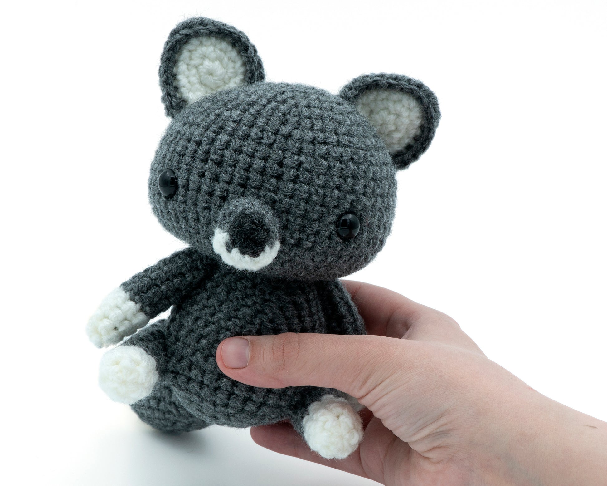 If the recommended size yarn and hook are used this crochet wolf will be approximately 13.9 cm (5.5 inches) tall by 10.1 cm (4 inches) wide.