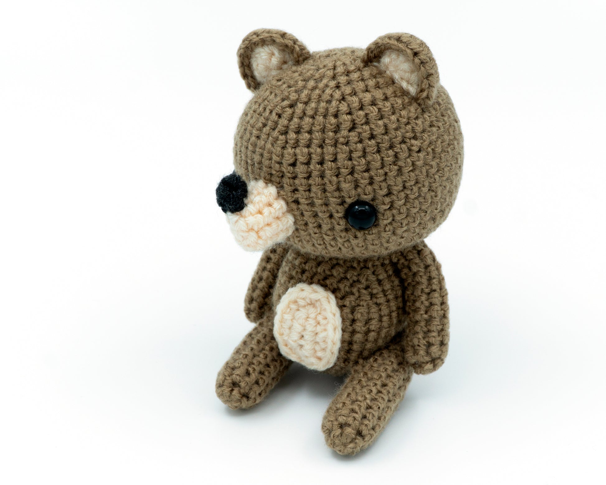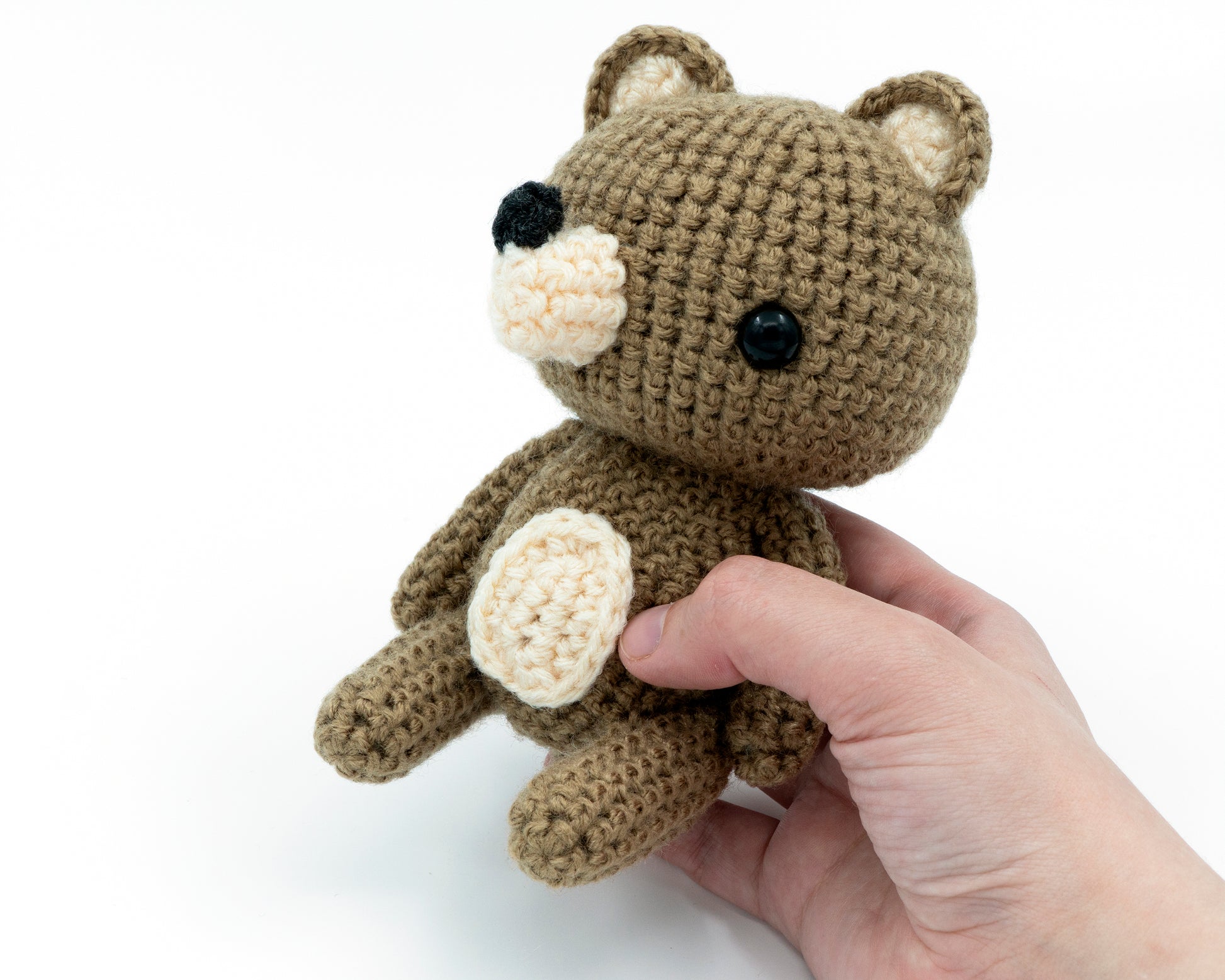 If the recommended size yarn and hook are used this crochet bear will be approximately 13.9 cm (5.5 inches) tall by 10.1 cm (4 inches) wide.