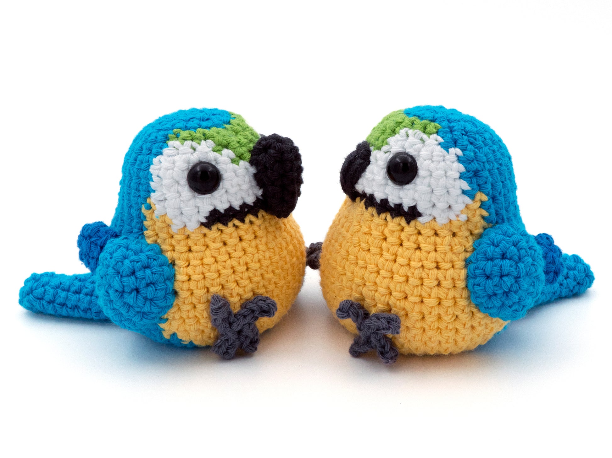 This amigurumi Blue and Gold Macaw parrot pattern is written in English and uses US crochet terms.