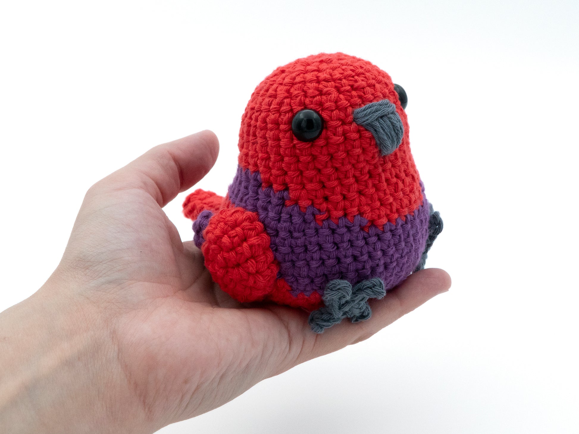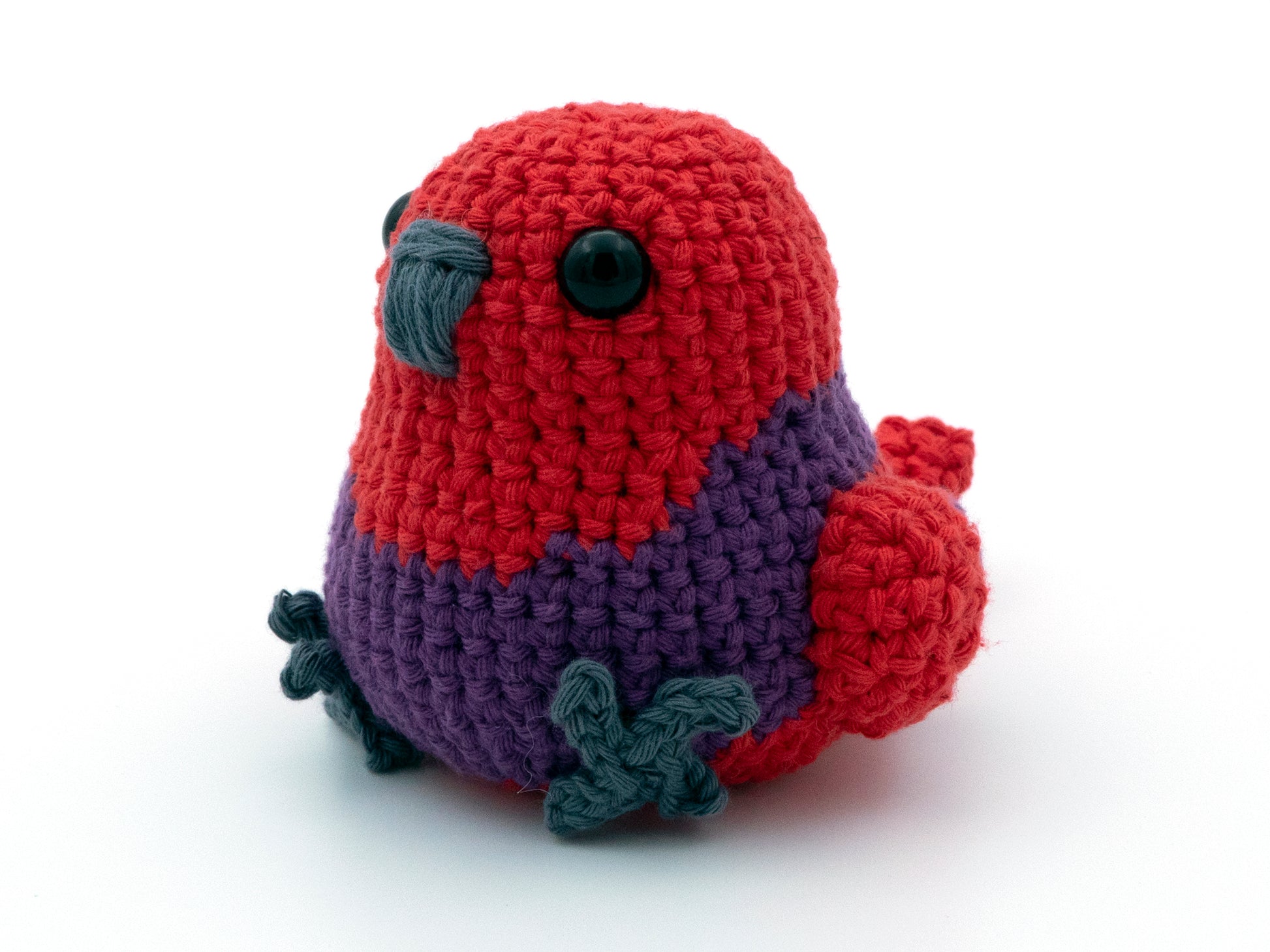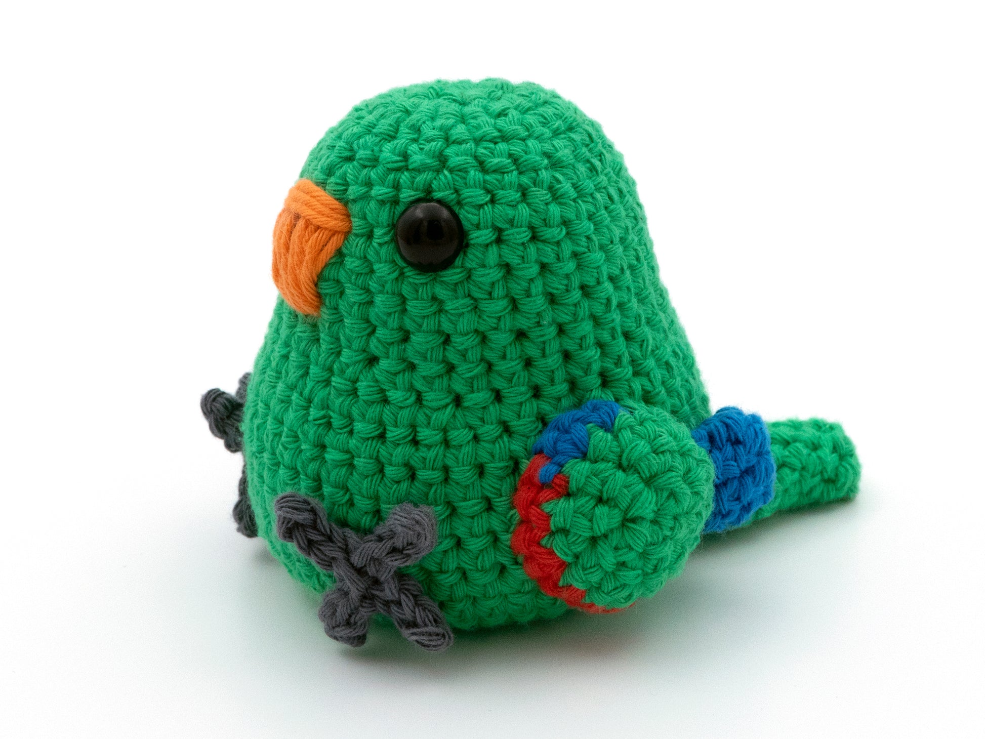 This amigurumi Eclectus parrot pattern is written in English and uses US crochet terms.