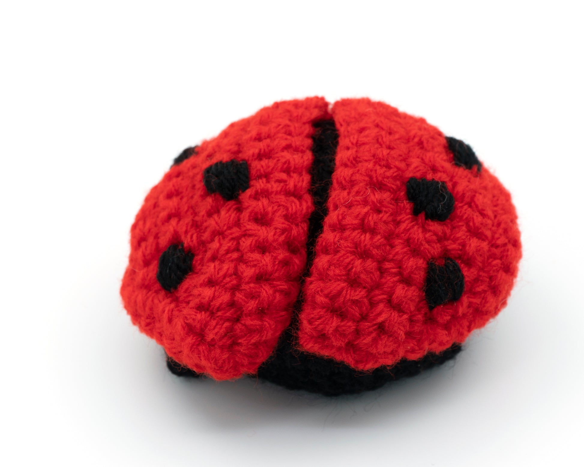 If the recommended hook and yarn size are used this Ladybug plush will be approximately 7.6 cm (3 inches) long by 5.1 cm (2 inches) tall.