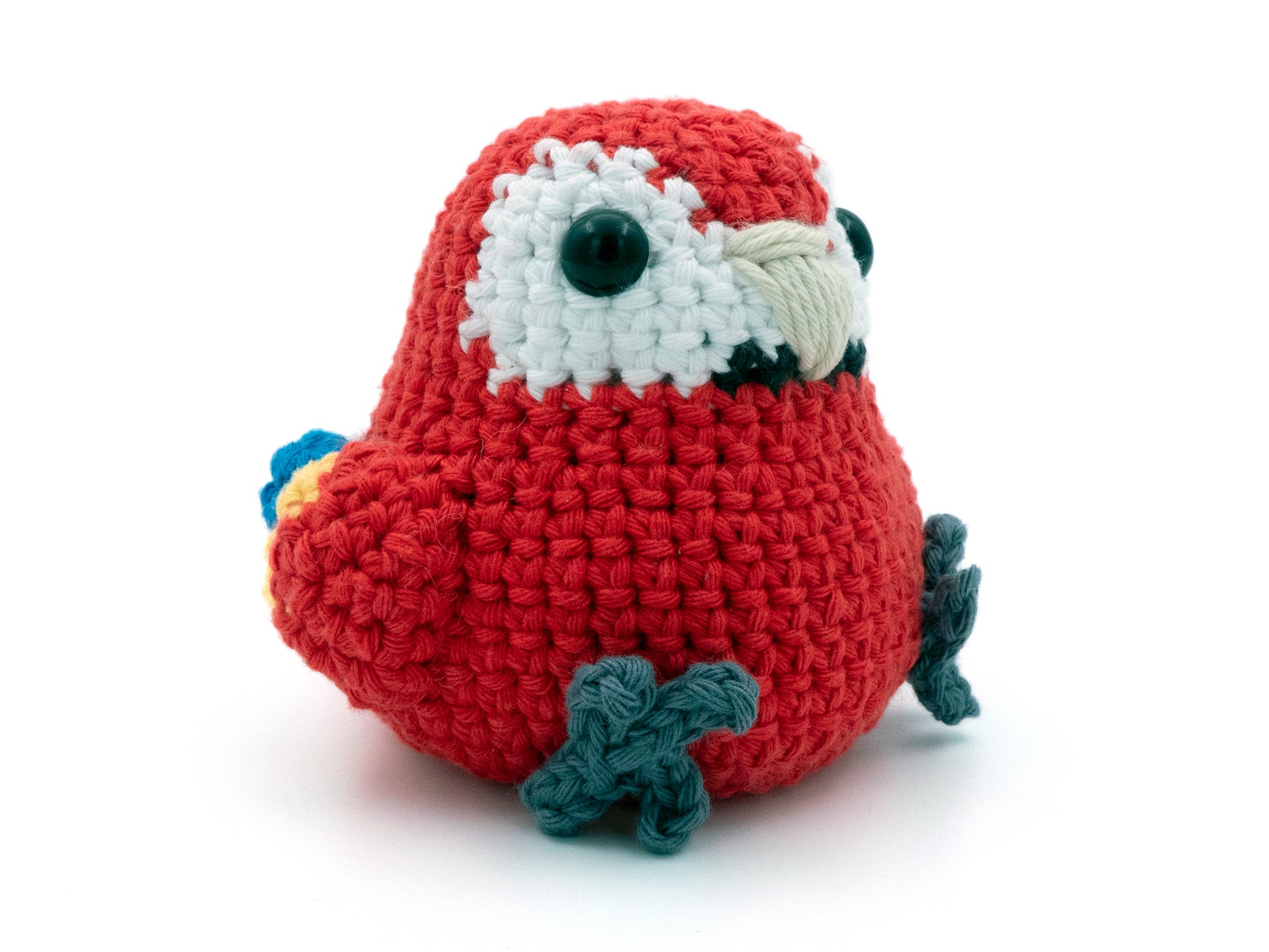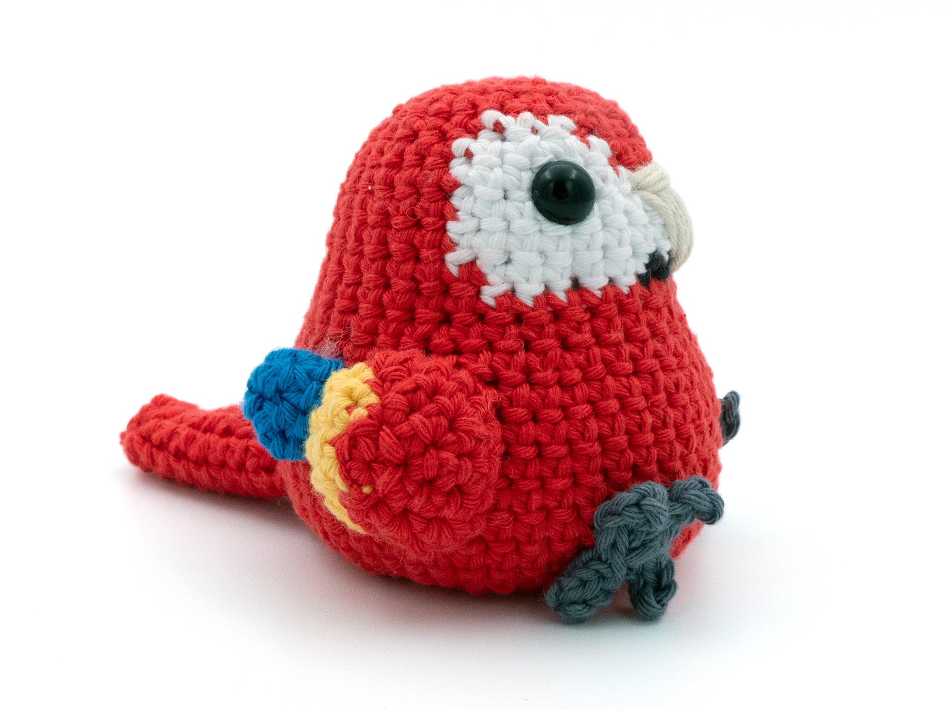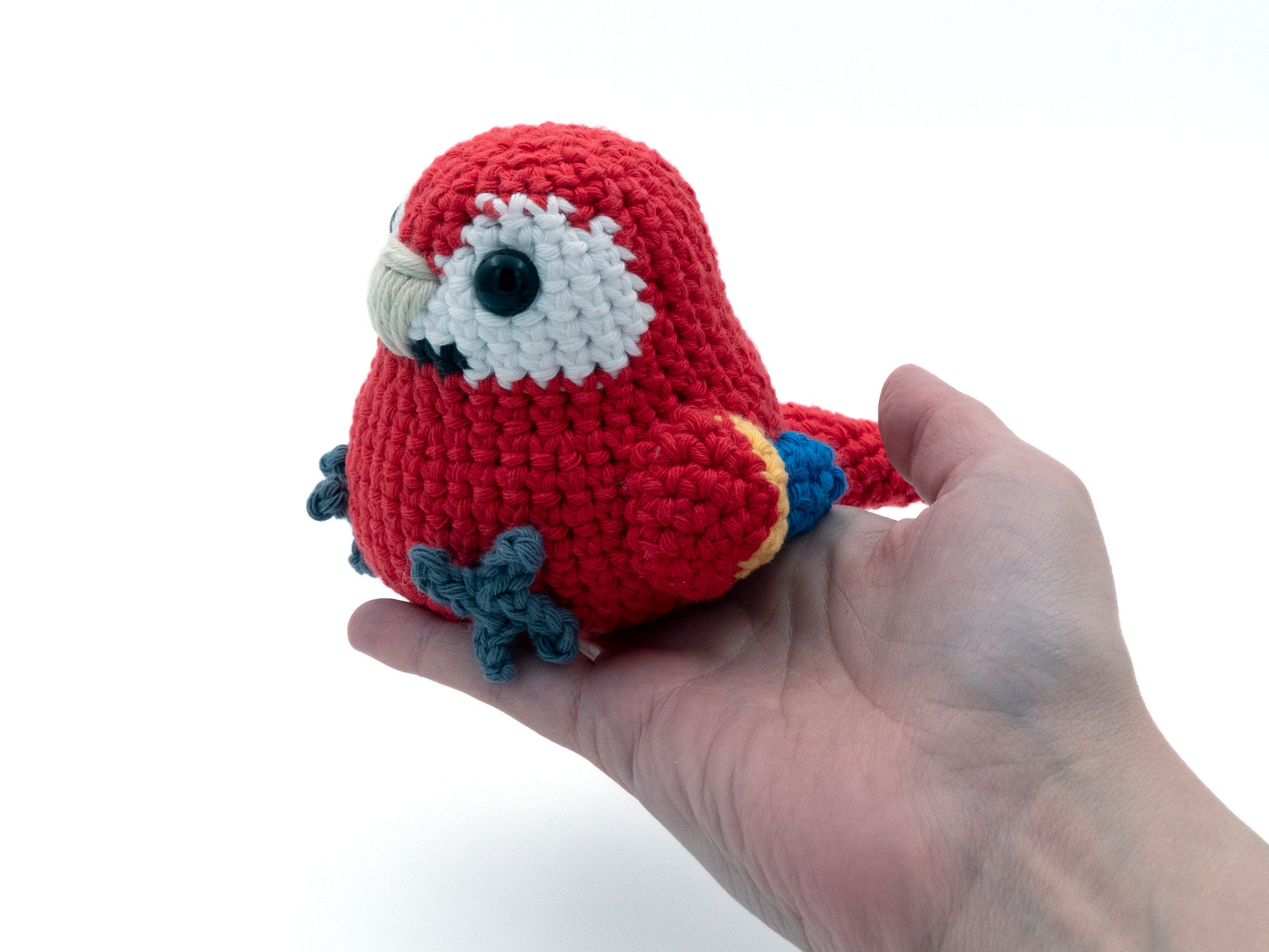 If the recommended hook and yarn size are used this Scarlet Macaw plush will be approximately 10 cm (3.9 inches) tall and 10 cm (3.9 inches) wide.