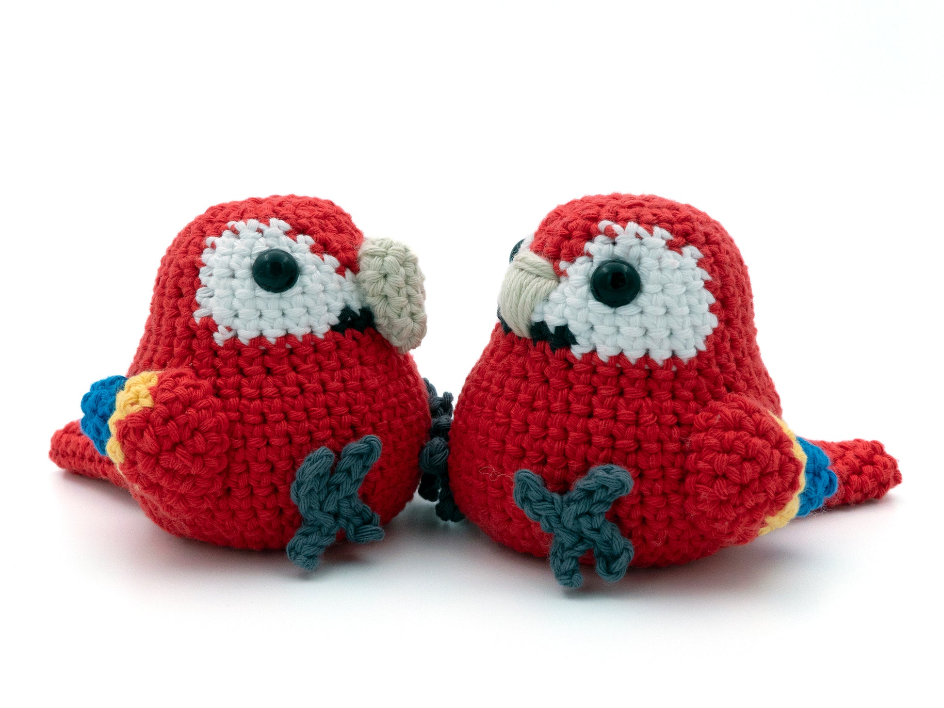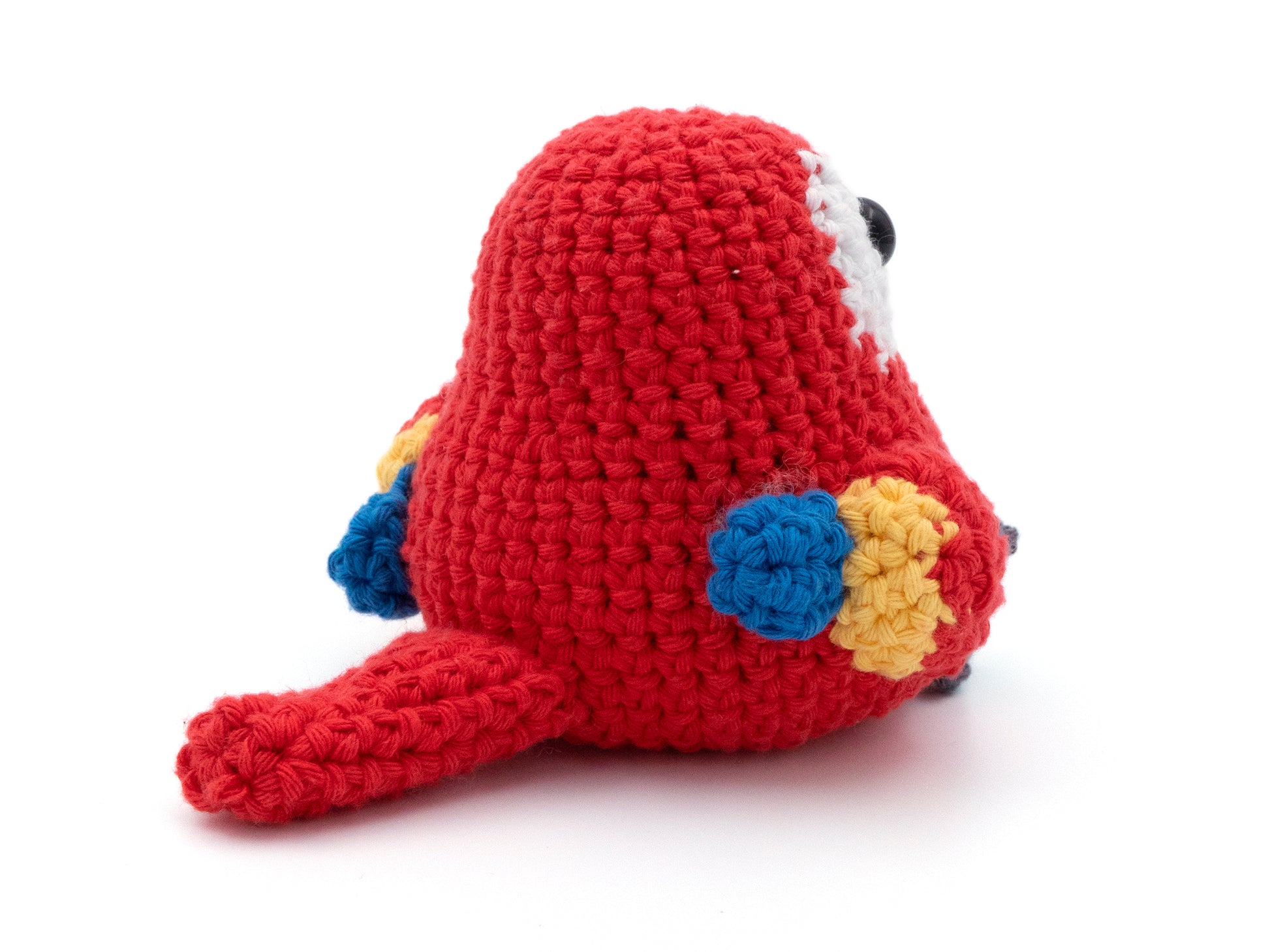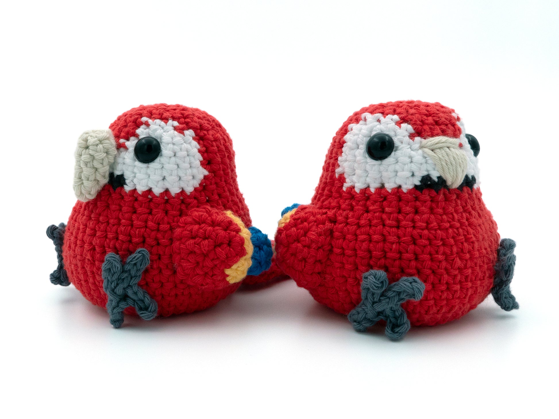 This amigurumi Scarlet Macaw parrot pattern is written in English and uses US crochet terms.