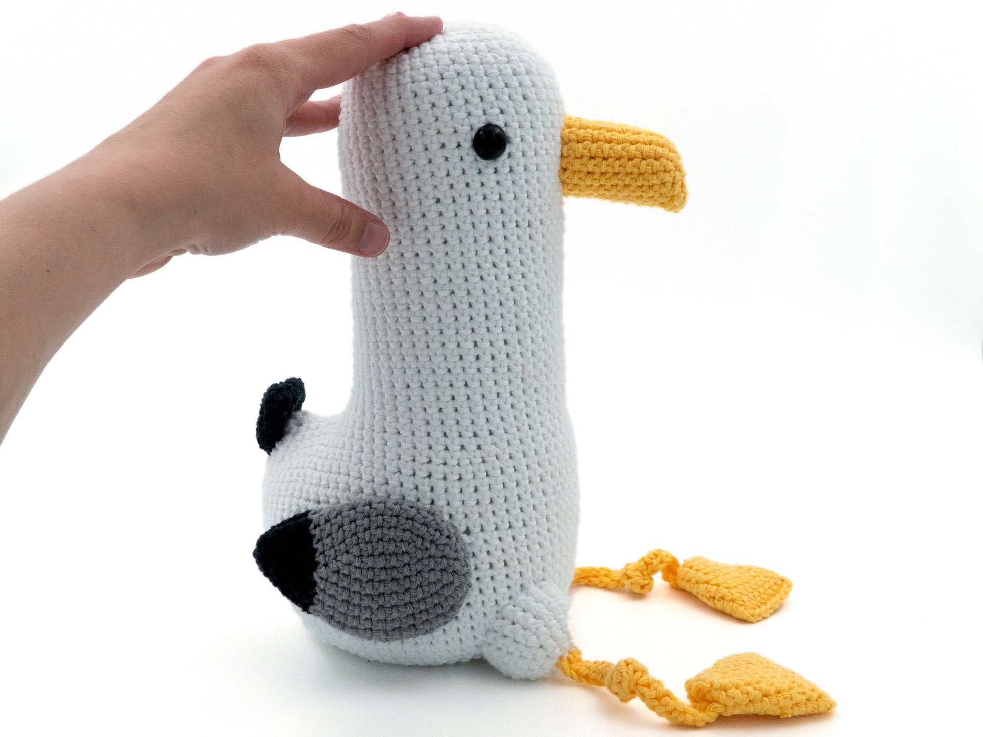 This amigurumi seagull pattern is written in English and uses US crochet terms.
