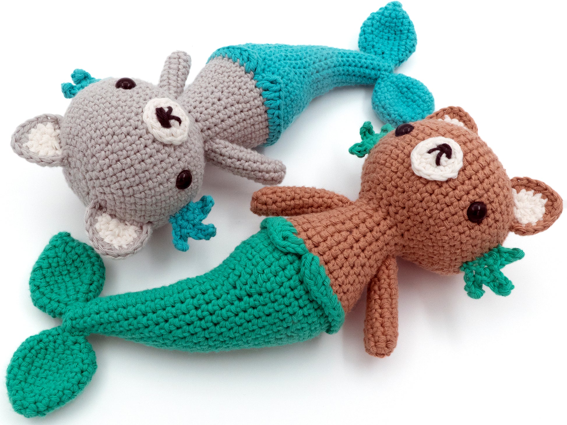 This listing includes one crochet Mercat in your choice of either grey or brown yarn, Made to Order.