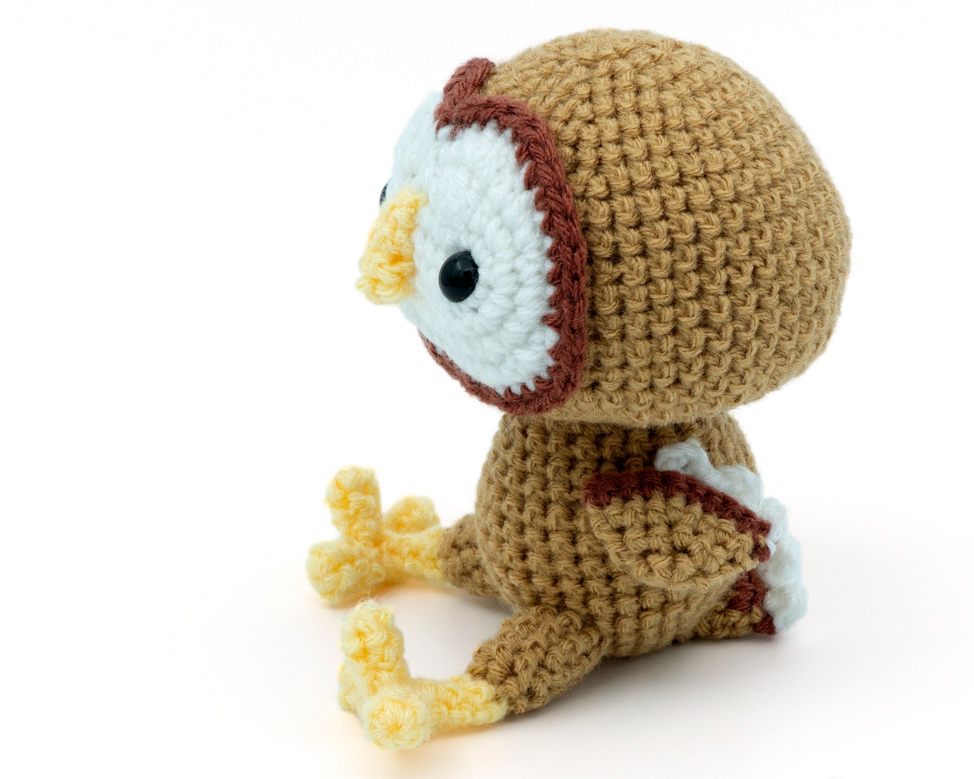 If the recommended size yarn and hook are used this crochet owl will be approximately 13.9 cm (5.5 inches) tall by 10.1 cm (4 inches) wide.