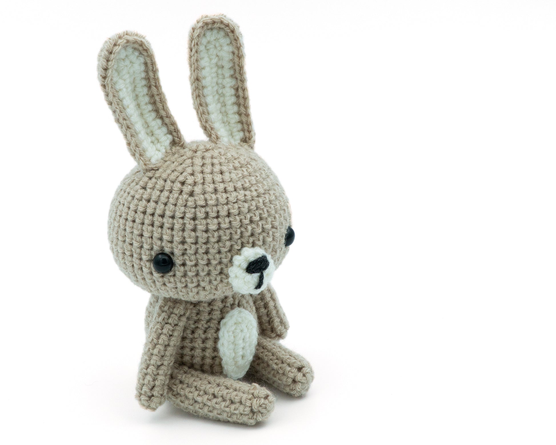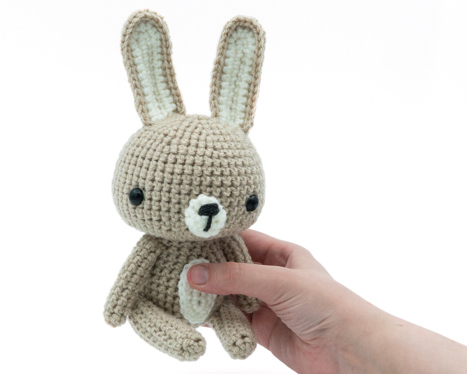 If the recommended size yarn and hook are used this crochet rabbit will be approximately 17.8 cm (7 inches) tall by 10.1 cm (4 inches) wide.