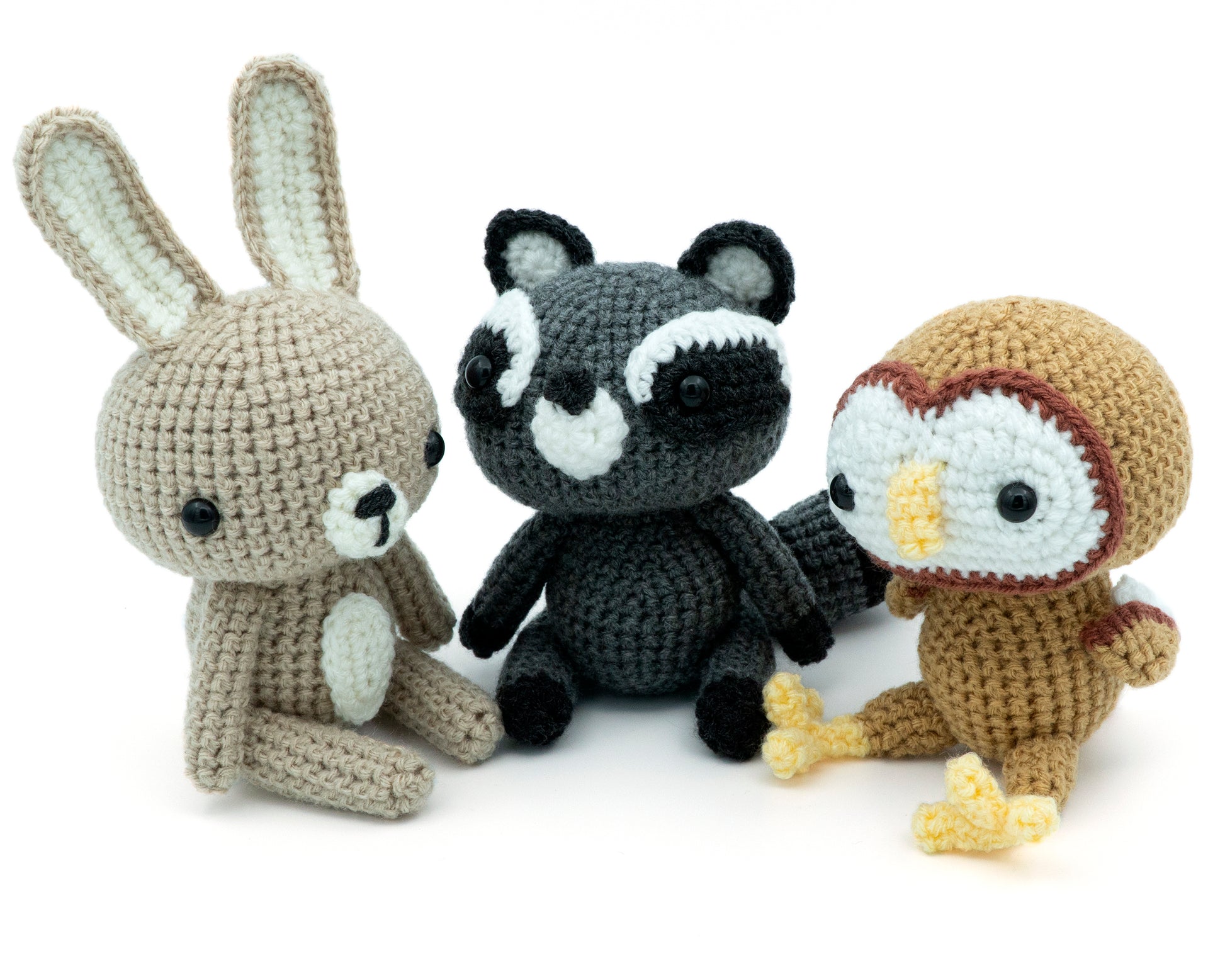 This listing is a pattern bundle containing these three woodland patterns: Rabbit, Raccoon, and Owl.