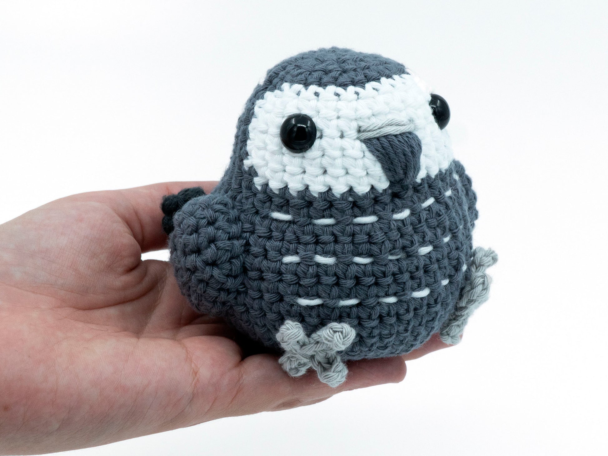 This African grey plush is approximately 10 cm (3.9 inches) tall and 10 cm (3.9 inches) wide.