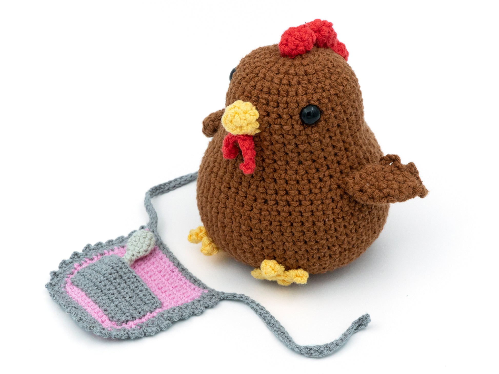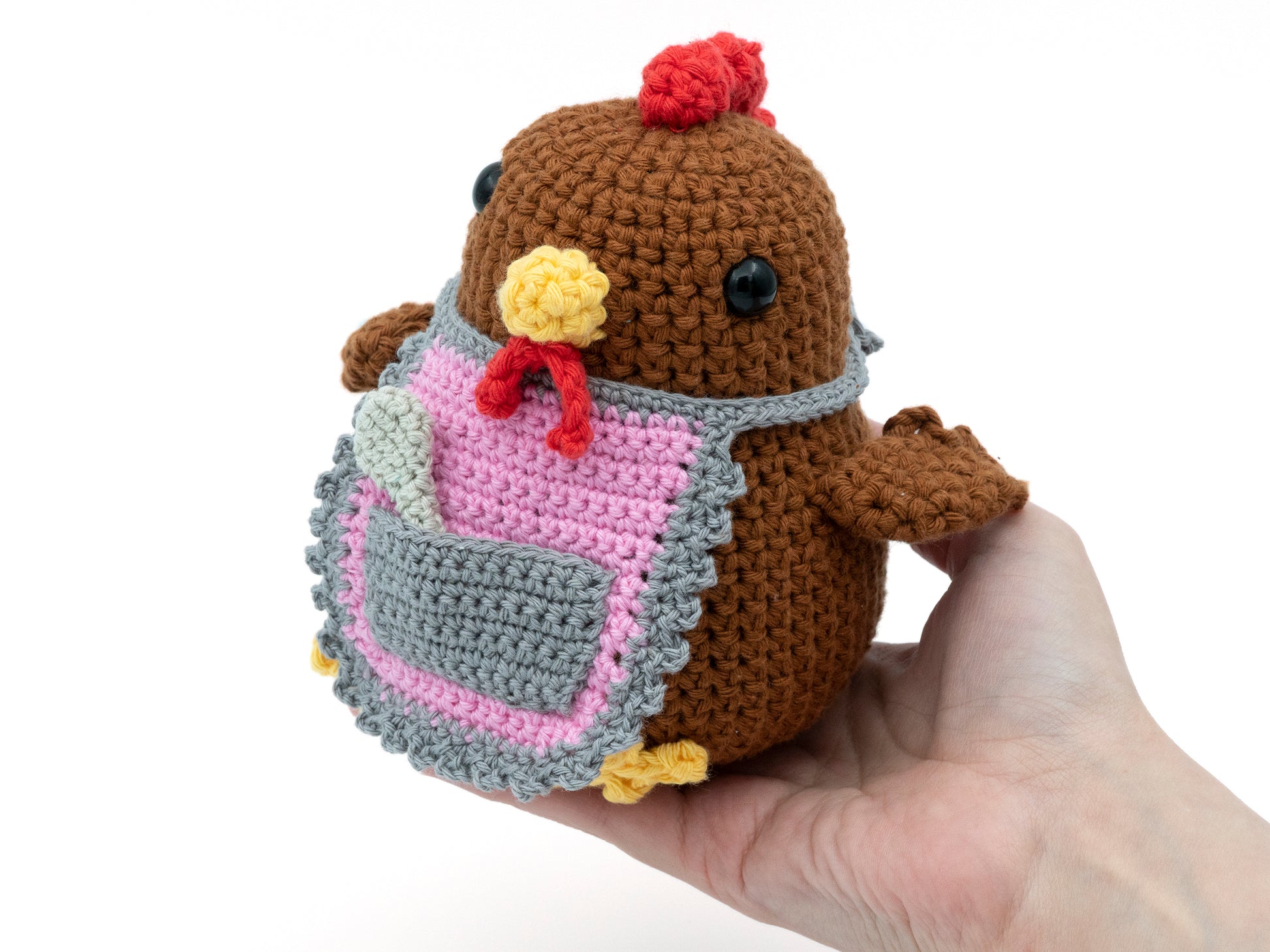 This listing includes one amigurumi mama hen with apron in your color choice Made to Order.