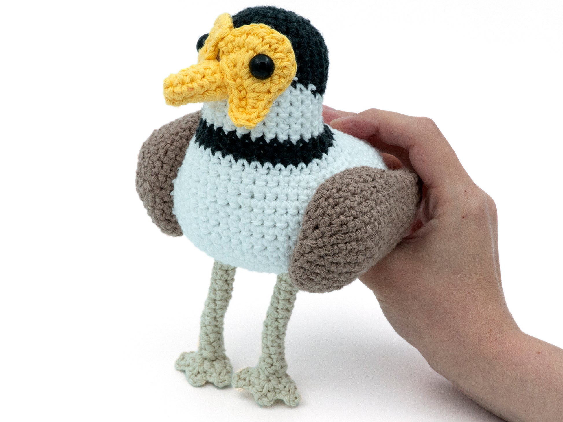 This listing includes one amigurumi masked lapwing plover bird Made to Order.